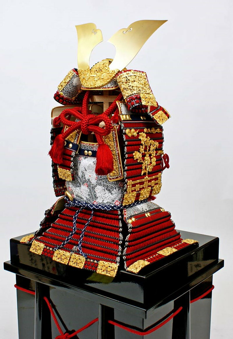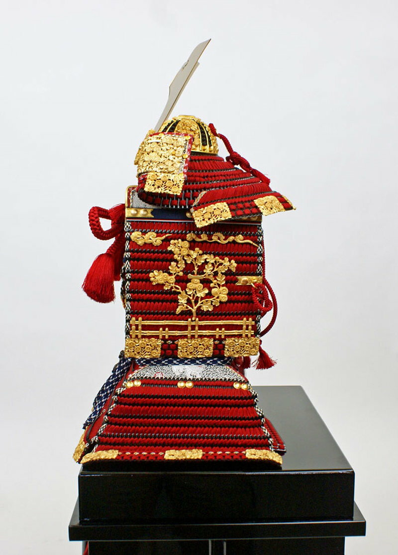 久月 五月人形 鎧平飾り中村宗光作 国宝 櫛引八幡宮所蔵模写 1/3 正絹赤糸縅菊一文字之大鎧 金小札 【2018年度新作】 h305-k-62348 K-59