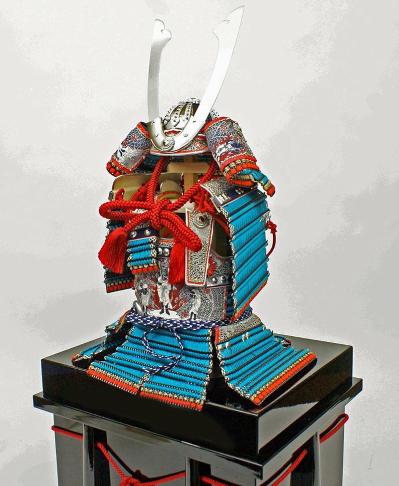 五月人形 豊久 鎧平飾り 鈴甲子雄山作 櫛引八幡宮所蔵模写 白糸褄取 三分の一本仕立 【2018年度新作】 h305-mo-501122 GC-033